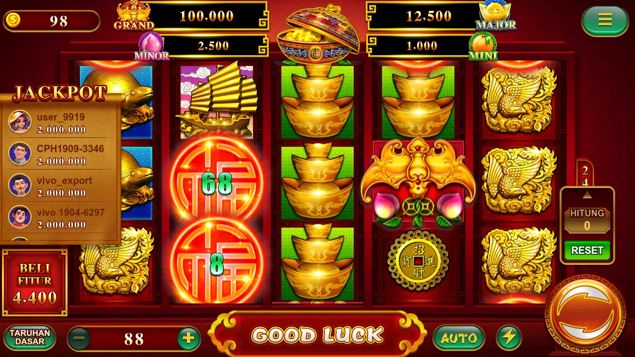 Hadapi naga legendaris dalam slot Fortune Dragon! Jackpot Rp762,327,782 menanti para pemberani. Setiap putaran dihiasi simbol naga emas dan koin kemakmuran. Fitur respin dan expanding wild meningkatkan peluang menang hingga 5x lipat. Download Gm777 APK untuk mengakses game ini dan koleksi slot bertema Asia lainnya.